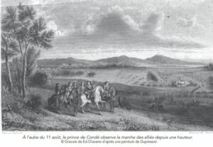 Les Alliés décidèrent de marcher directement vers le sud, en direction de la France. Improviser une telle marche, si près de l’armée ennemie, relevait de l’audace. Mais, confiants dans leur supériorité, ils se mirent en mouvement dès l’aube du 11 août, cap sur la Champagne. Averti sans délai, le prince de Condé quitta son camp de Piéton pour observer ce départ inattendu. Il comprit aussitôt l’avantage qu’il pouvait en tirer.